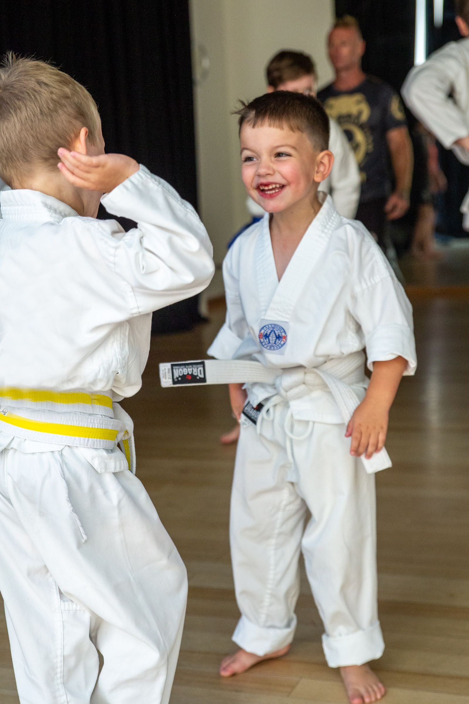 For kids, wear your belt at all times when training. If it becomes loose or comes off, tie it back on quickly and face the back of class to do so. If you cannot yet tie your belt (we understand that it takes practice!), put up your hand to ask a Coach for help.